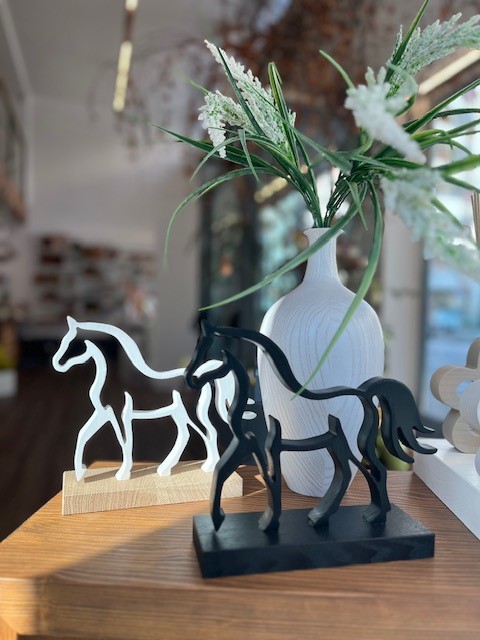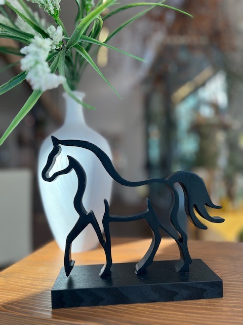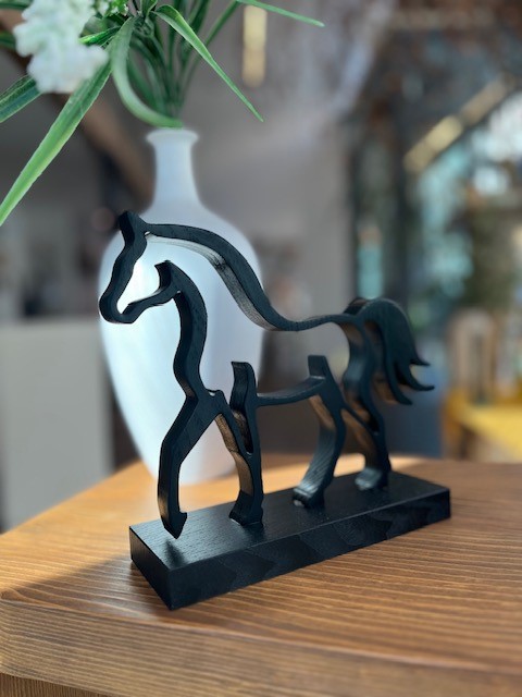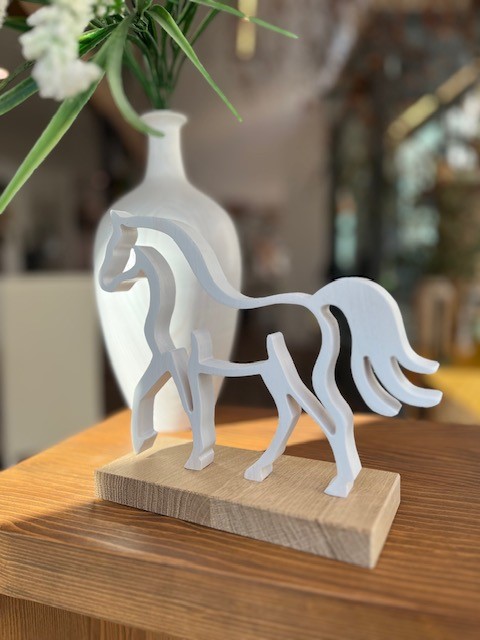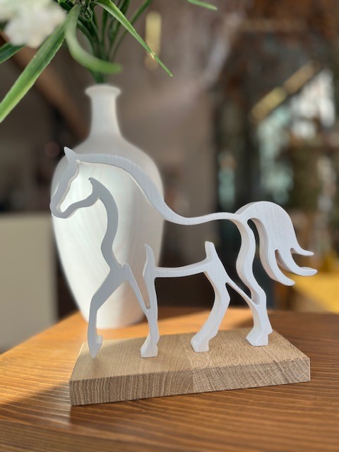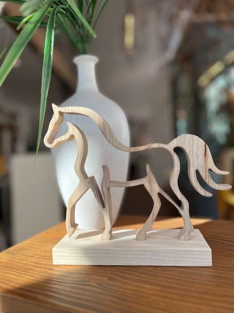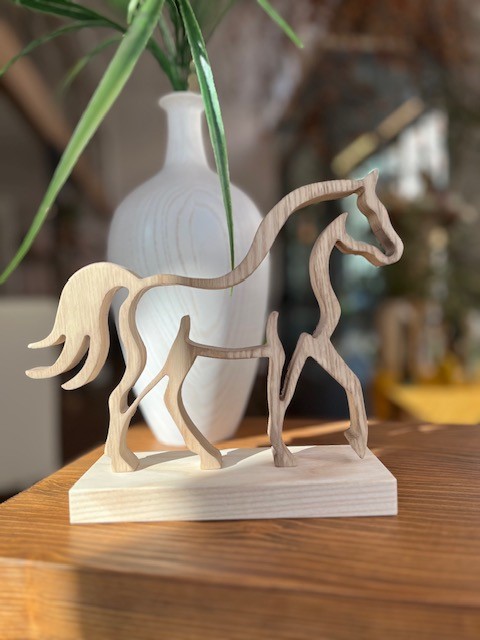 Cavallo decorativo traforato lavorato a mano in legno massello di frassino o rovere