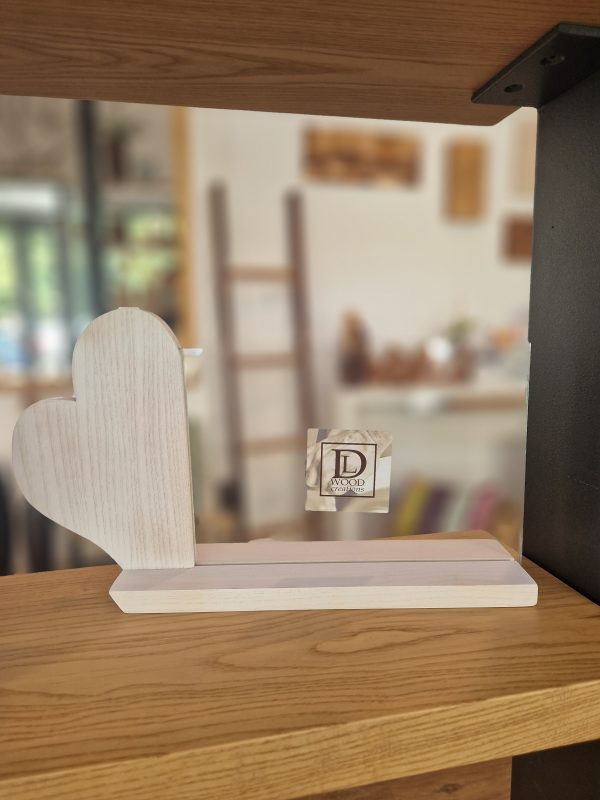 Porta fotografia orizzontale con cuore laterale in legno di frassino. E’ costituito da due vetri molati da 3 mm dove è possibile inserire doppia foto (fronte e retro) che vengono inseriti in una scanalatura alla base e sul lato del cuore. E’ possibile personalizzarlo con una piccola dedica. Ideale anche come bomboniera.