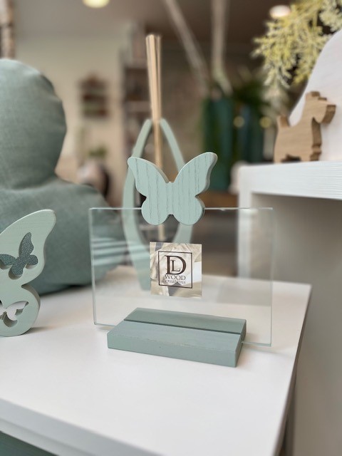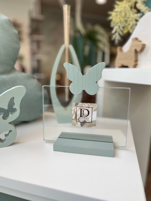 Porta fotografia realizzato a mano in legno di Frassino composto da una base scanalata che sostiene due vetri molati da 3 mm e tenuti vicino a loro volta da una farfallina. In questo porta foto non avendo ne fronte ne retro è possibile mettere 2 immagini. Sulla base o sulla farfalla è possibile incidere una parola o un nome.