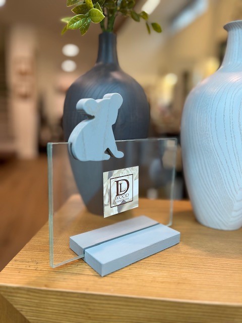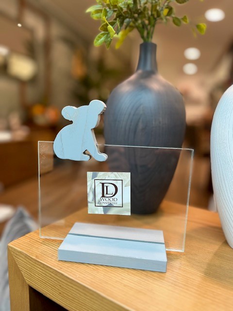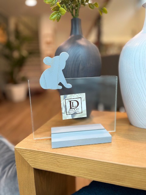 Porta fotografia realizzato a mano in legno di Frassino composto da una base scanalata che sostiene due vetri molati da 3 mm e tenuti vicino a loro volta da un grazioso Koala anche lui di frassino. In questo porta foto non avendo ne fronte ne retro è possibile mettere 2 immagini.