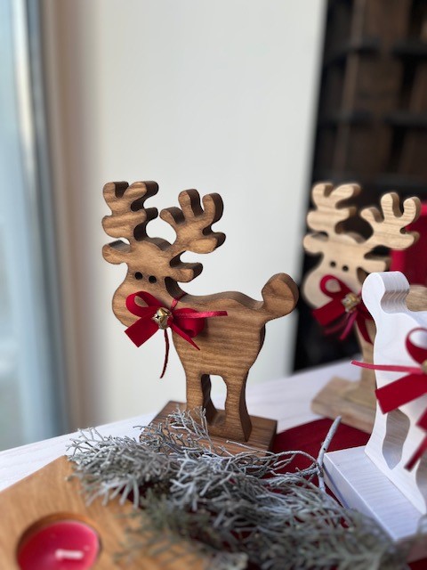 Renna in legno massello di frassino disponibile in tre diverse colorazioni realizzata  a mano artigianalmente. Un oggetto unico che con la sua simpatia donerà un pizzico di allegria ad ogni angolo della casa !